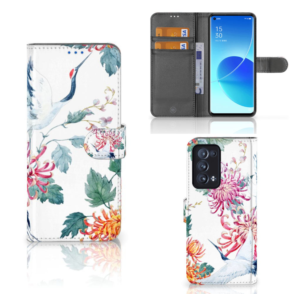 OPPO Reno 6 Pro Plus 5G Telefoonhoesje met Pasjes Bird Flowers
