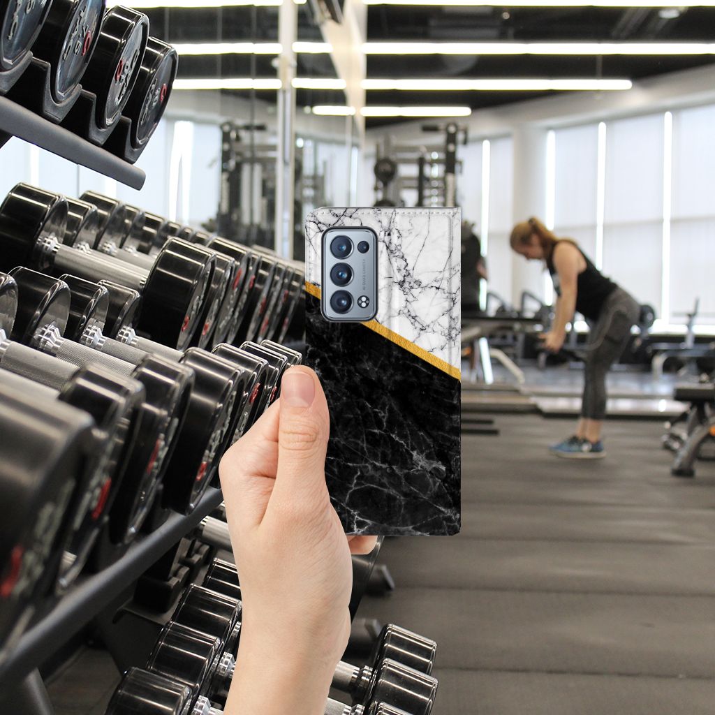 OPPO Reno 6 Pro Plus 5G Bookcase Marmer Wit Zwart - Origineel Cadeau Man