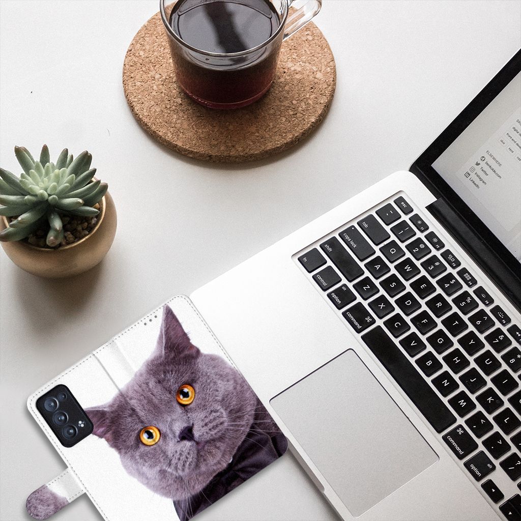 OPPO Reno 6 Pro Plus 5G Telefoonhoesje met Pasjes Kat