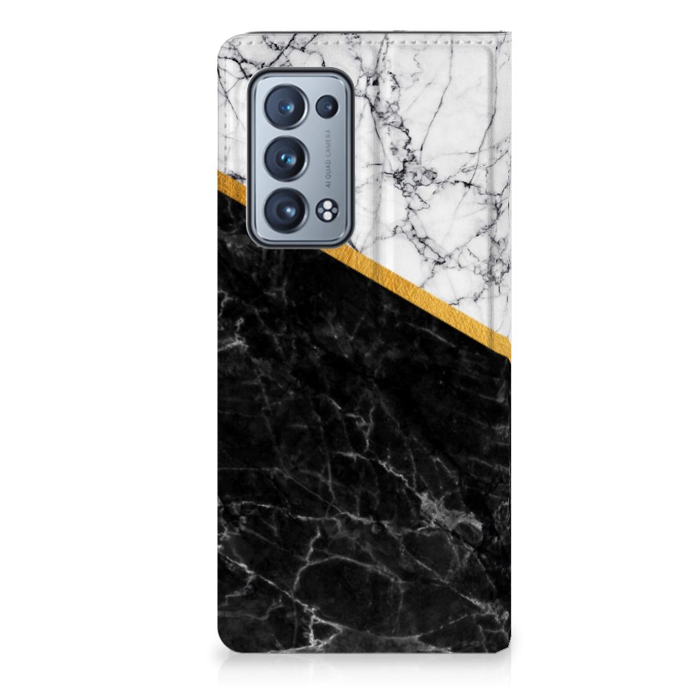 OPPO Reno 6 Pro Plus 5G Standcase Marmer Wit Zwart - Origineel Cadeau Man