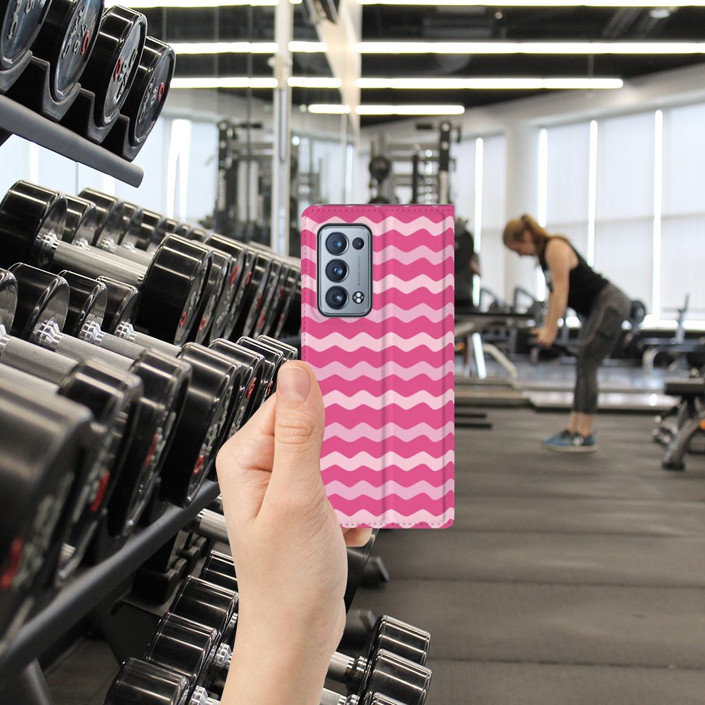 OPPO Reno 6 Pro Plus 5G Hoesje met Magneet Waves Pink