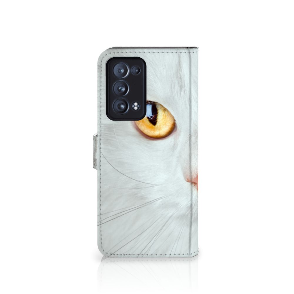 OPPO Reno 6 Pro Plus 5G Telefoonhoesje met Pasjes Witte Kat