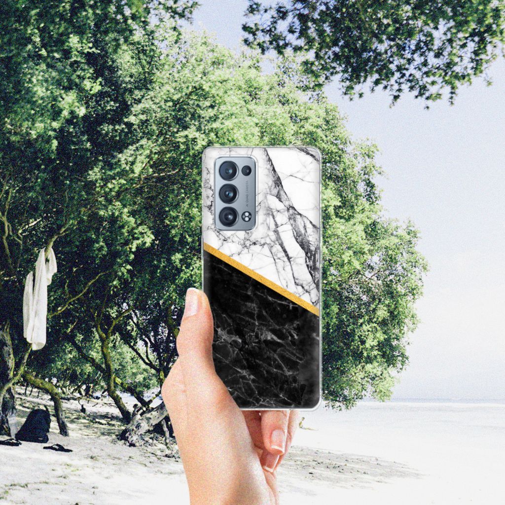 OPPO Reno 6 Pro Plus 5G TPU Siliconen Hoesje Marmer Wit Zwart - Origineel Cadeau Man