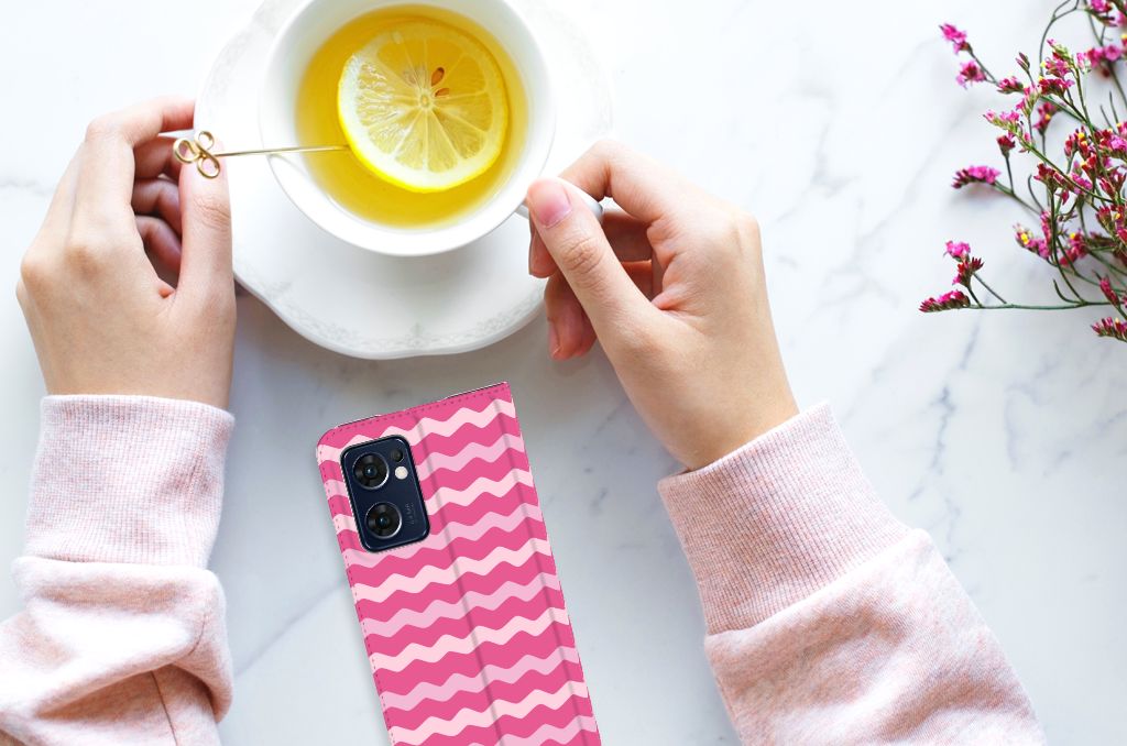 OPPO Find X5 Lite | Reno7 5G Hoesje met Magneet Waves Pink