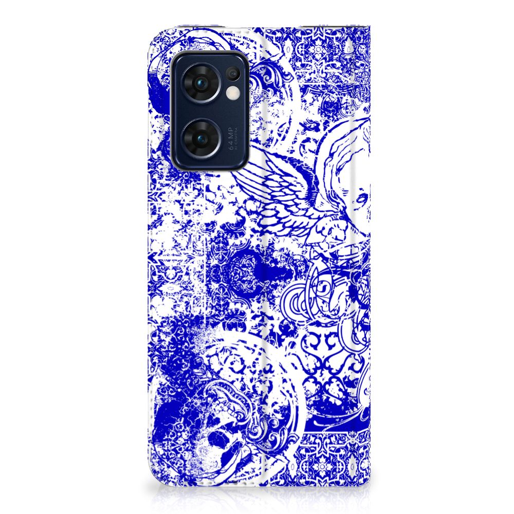 Mobiel BookCase OPPO Find X5 Lite | Reno7 5G Angel Skull Blauw