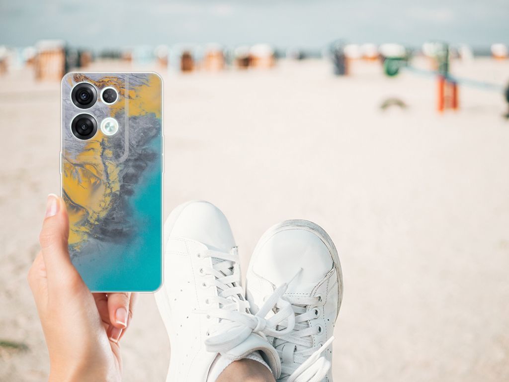 OPPO Reno8 Pro TPU Siliconen Hoesje Marble Blue Gold