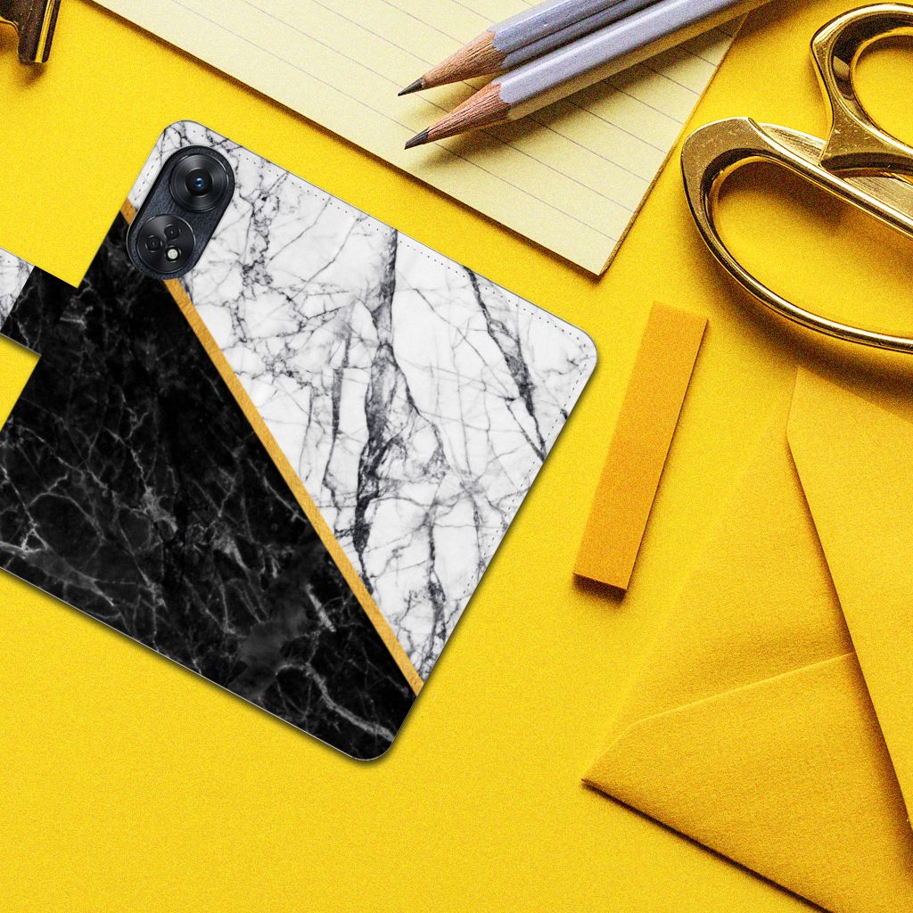 OPPO Reno8 T 4G Bookcase Marmer Wit Zwart - Origineel Cadeau Man