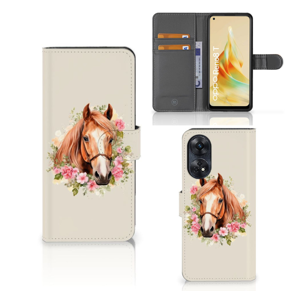 Telefoonhoesje met Pasjes voor OPPO Reno8 T 4G Paard