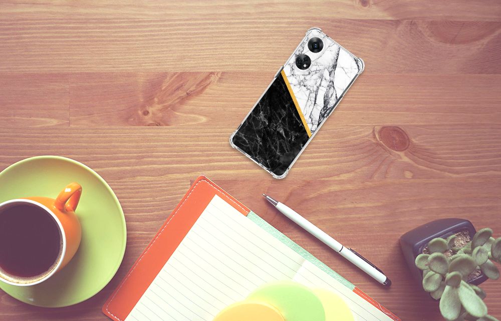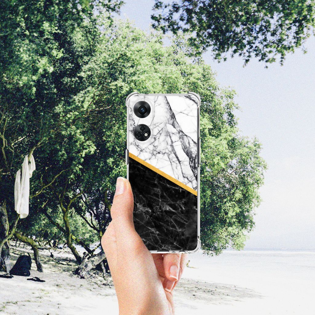 OPPO Reno8 T 4G Anti-Shock Hoesje Marmer Wit Zwart - Origineel Cadeau Man