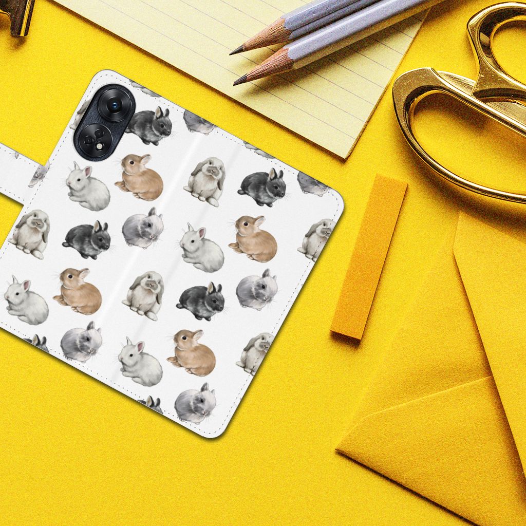 Telefoonhoesje met Pasjes voor OPPO Reno8 T 4G Konijntjes