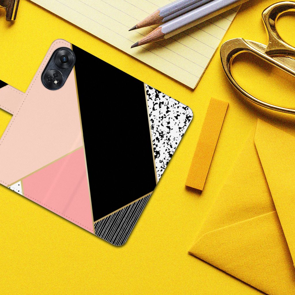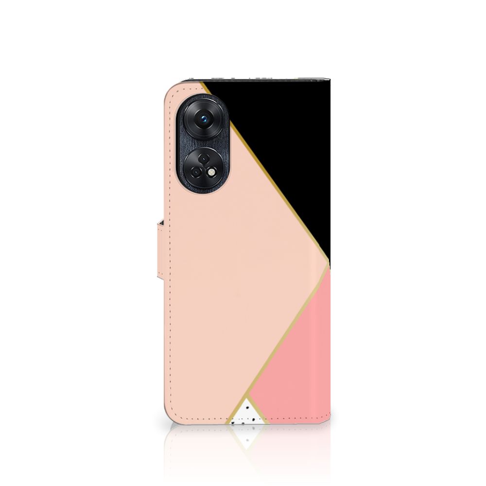 OPPO Reno8 T 4G Book Case Zwart Roze Vormen
