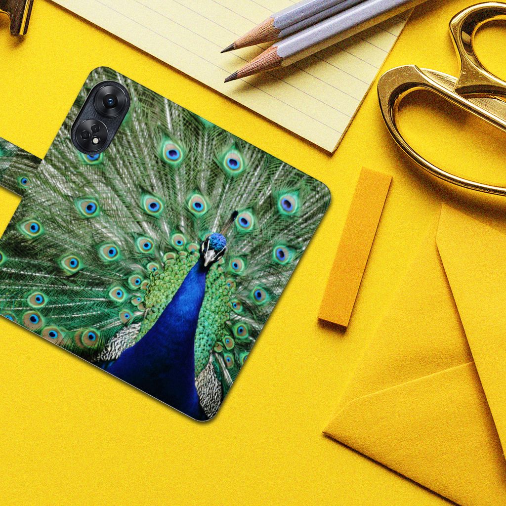 OPPO Reno8 T 4G Telefoonhoesje met Pasjes Pauw met Bloemen
