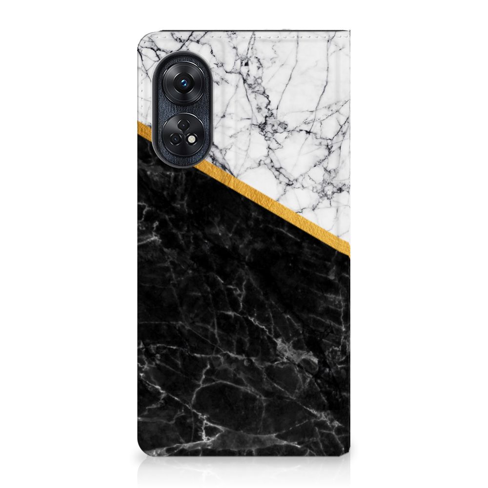 OPPO Reno8 T 4G Standcase Marmer Wit Zwart - Origineel Cadeau Man