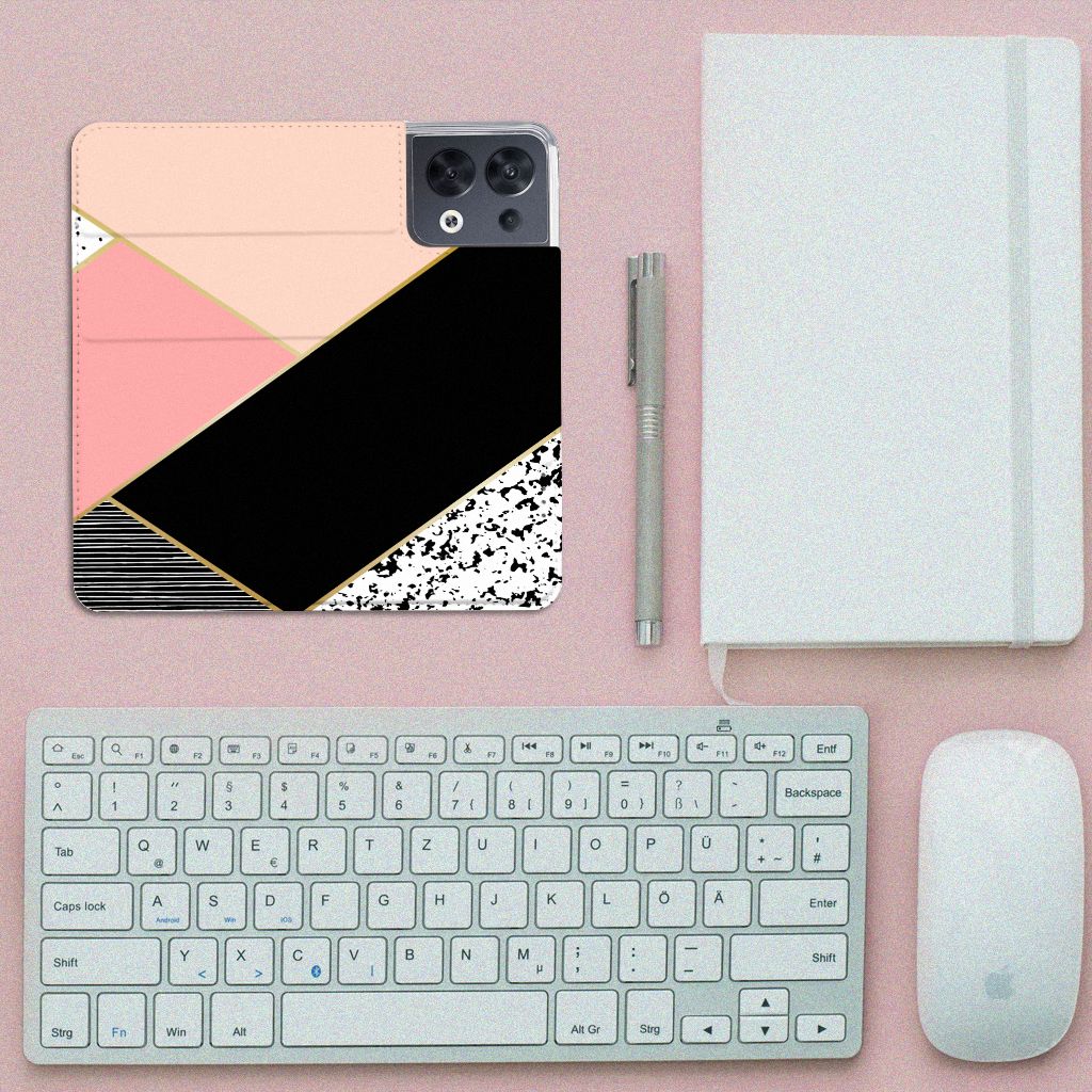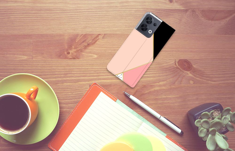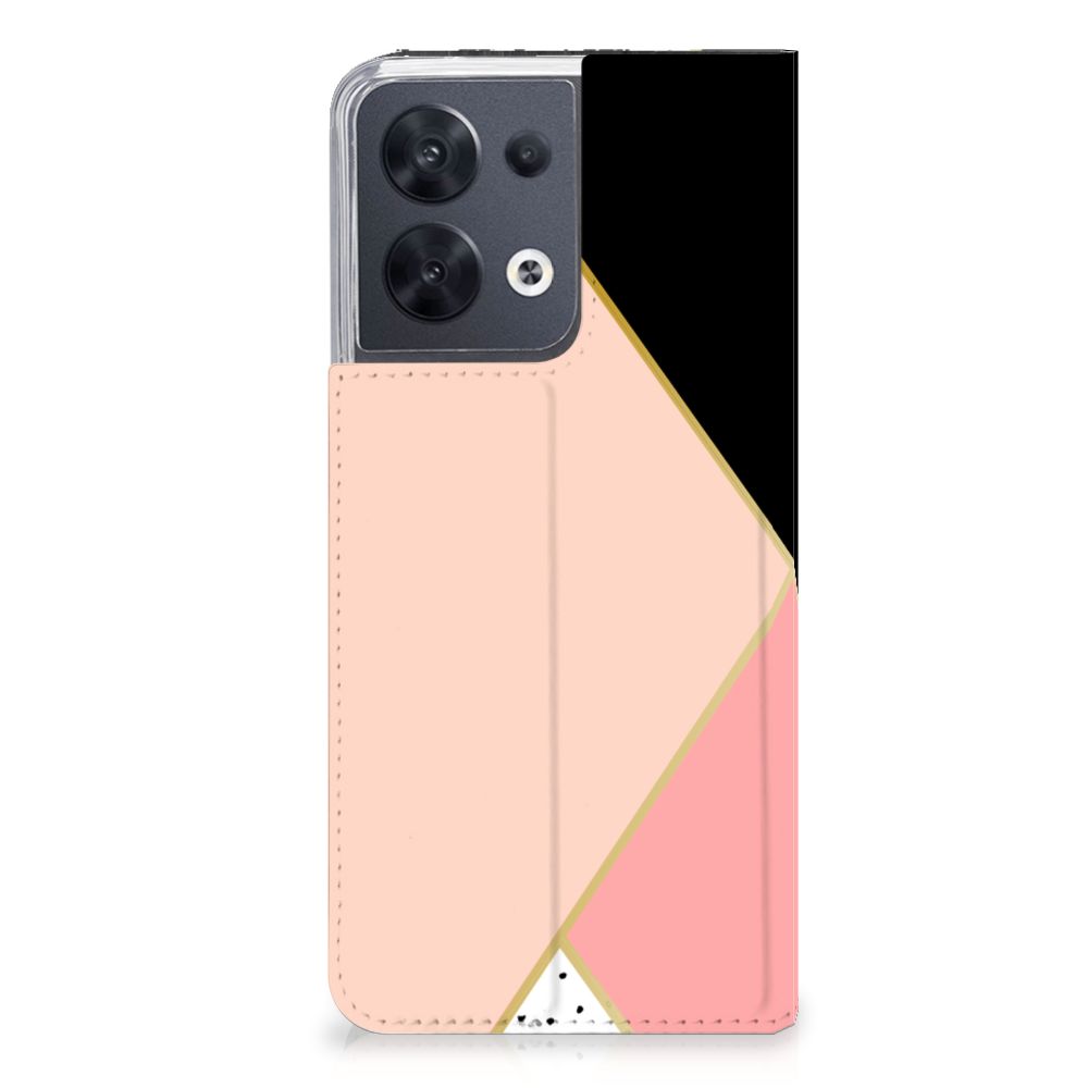 OPPO Reno8 Stand Case Zwart Roze Vormen