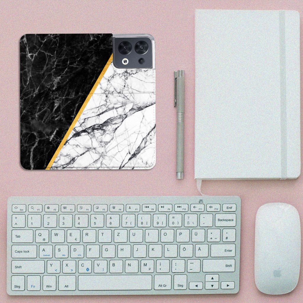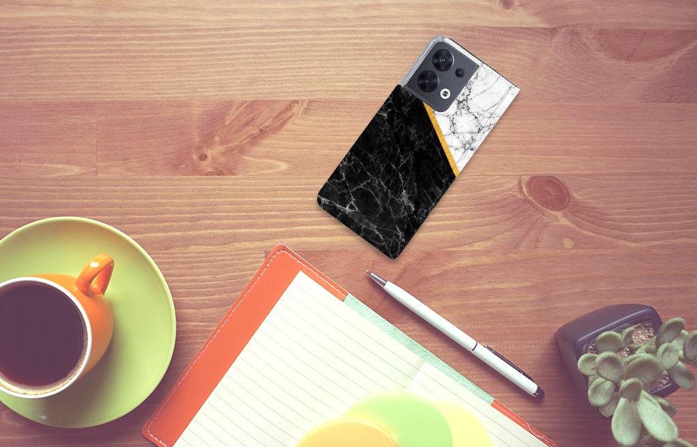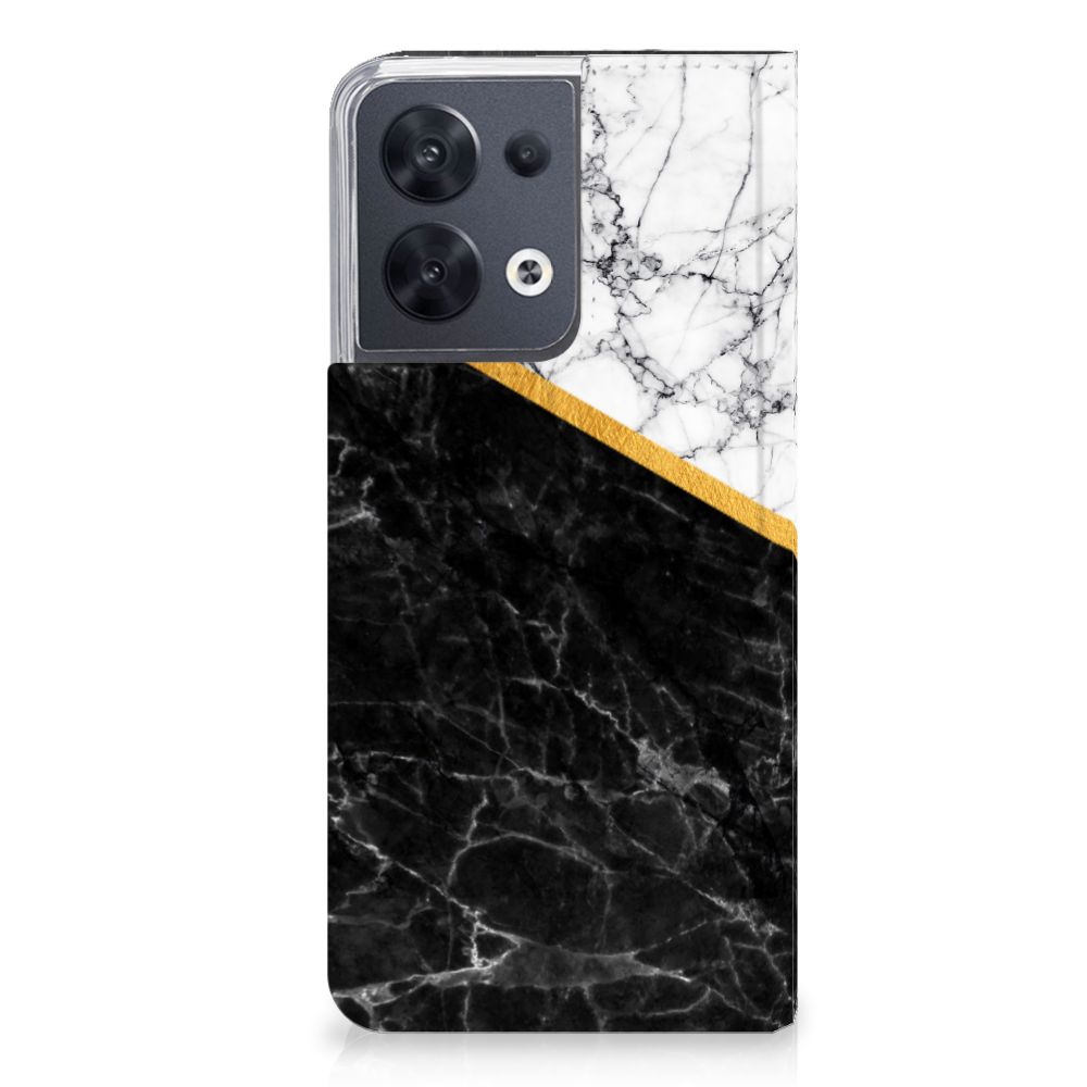 OPPO Reno8 Standcase Marmer Wit Zwart - Origineel Cadeau Man
