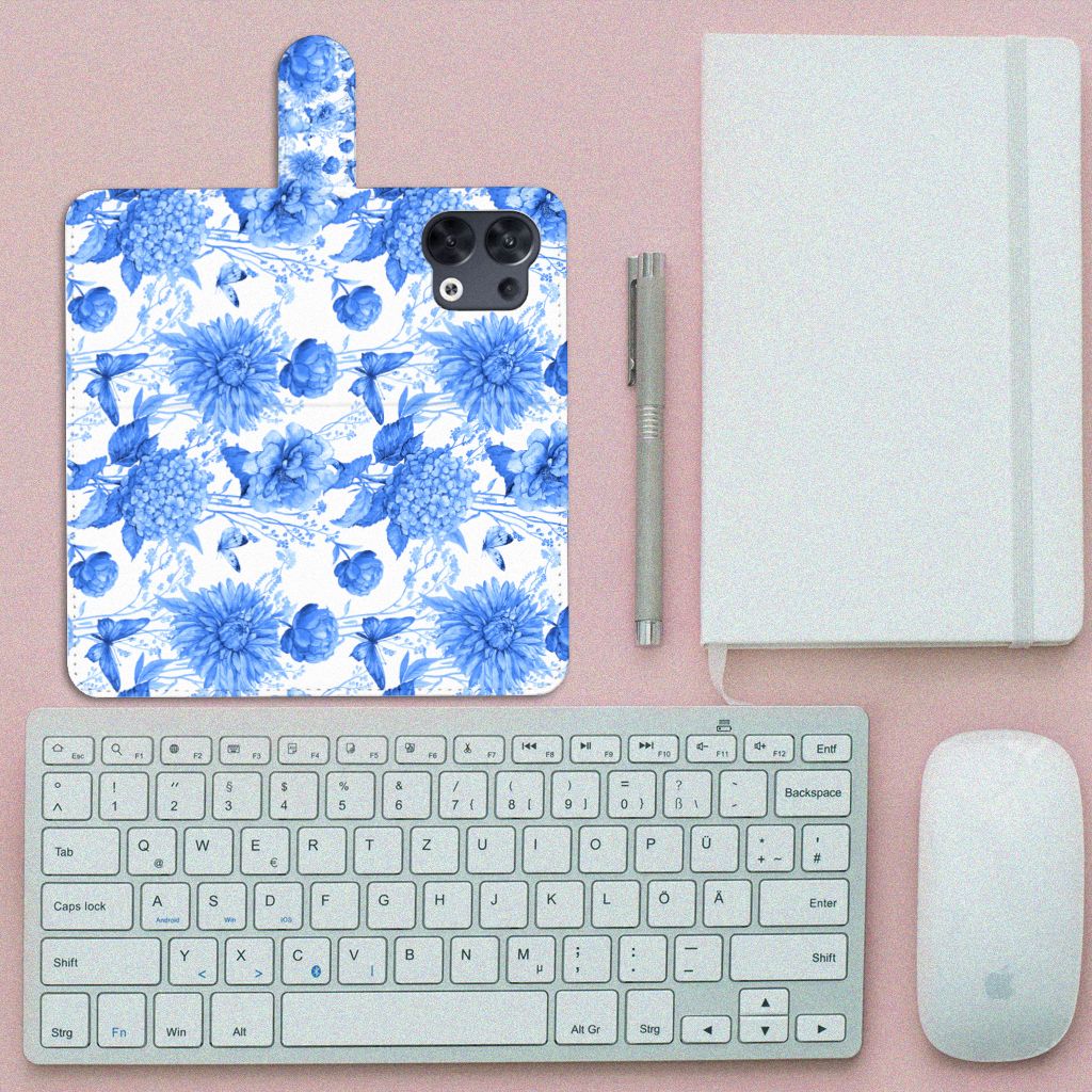 Smart Cover voor OPPO Reno8 Flowers Blue