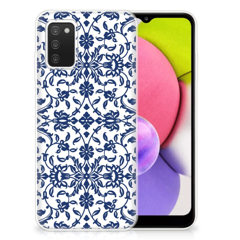Samsung Galaxy A03S Silicone-hoesje Flowers Blue DTMP