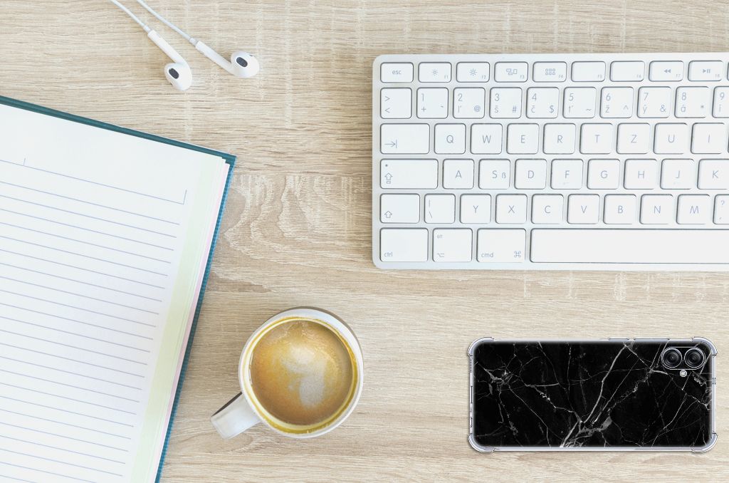 Samsung Galaxy A04e Anti-Shock Hoesje Marmer Zwart - Origineel Cadeau Vader