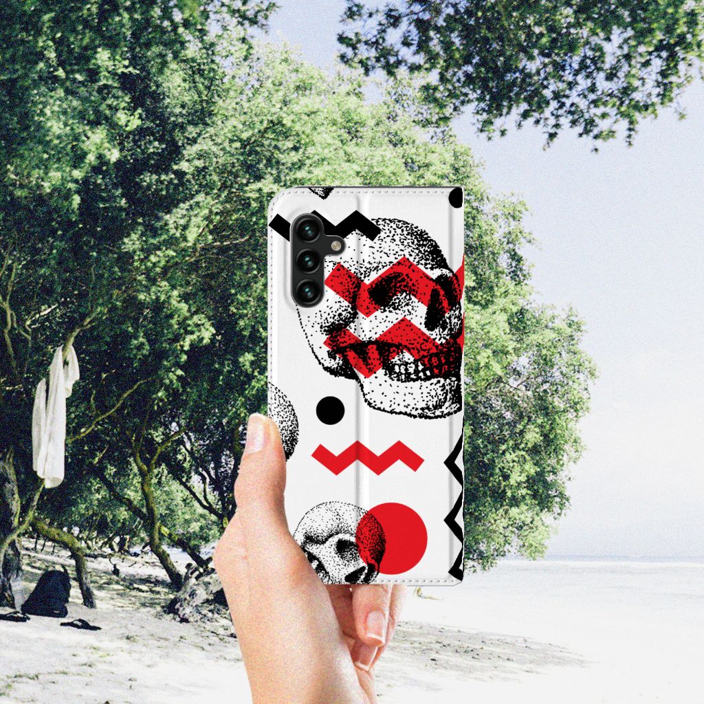 Mobiel BookCase Samsung Galaxy A13 (5G) | Samsung Galaxy A04s Skull Red
