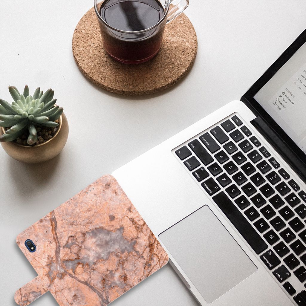 Samsung Galaxy A10 Bookcase Marmer Oranje