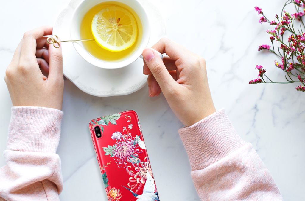 Samsung Galaxy A10 TPU Hoesje Bird Flowers