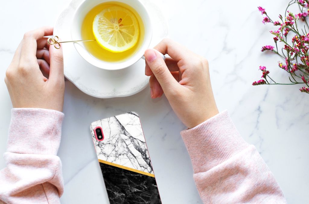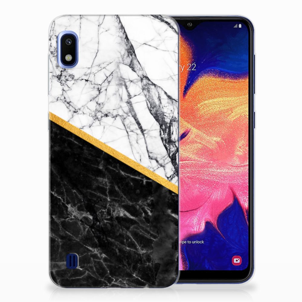 Samsung Galaxy A10 TPU Siliconen Hoesje Marmer Wit Zwart - Origineel Cadeau Man