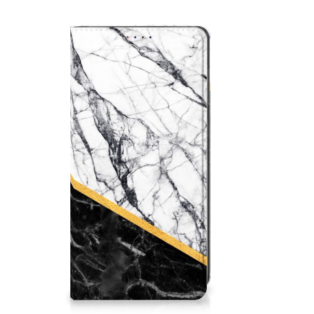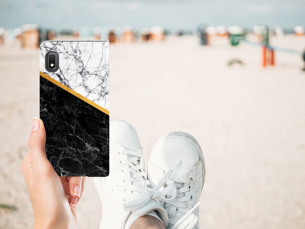 Samsung Galaxy A10 Standcase Marmer Wit Zwart - Origineel Cadeau Man