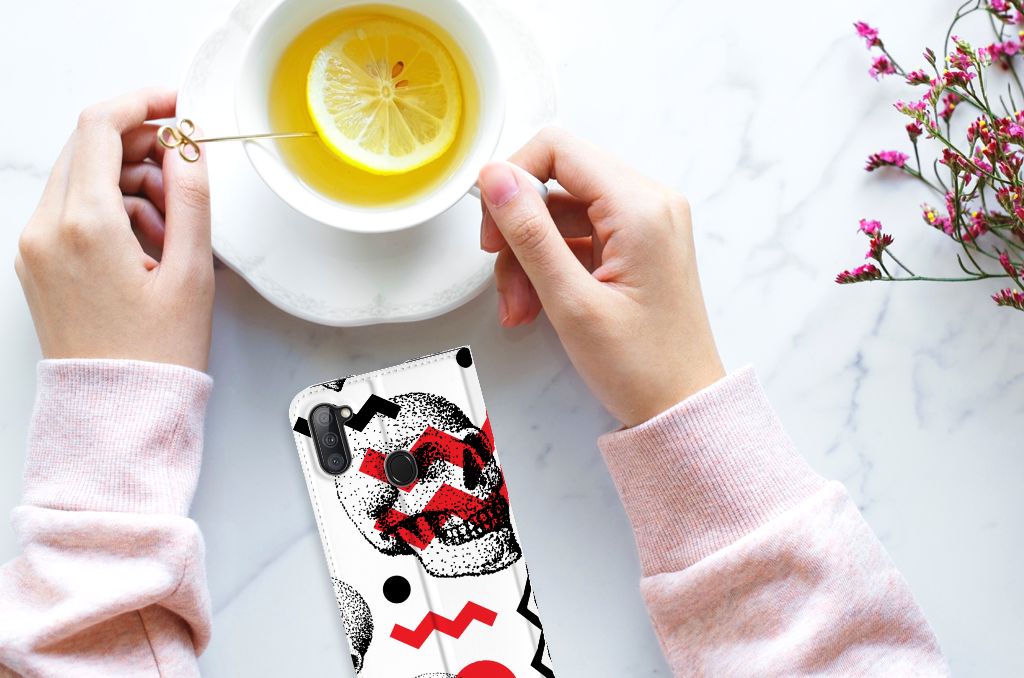 Mobiel BookCase Samsung Galaxy M11 | A11 Skull Red