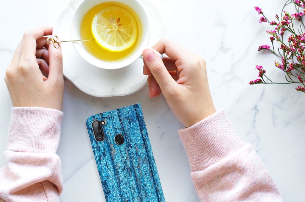 Samsung Galaxy M11 | A11 Book Wallet Case Wood Blue