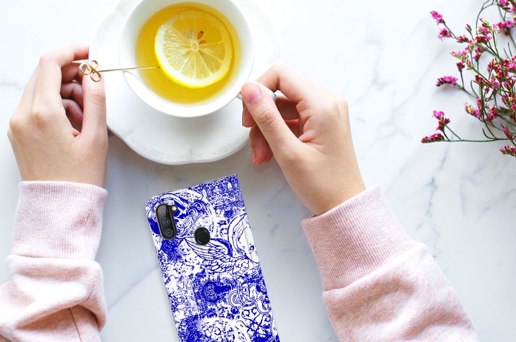 Mobiel BookCase Samsung Galaxy M11 | A11 Angel Skull Blauw