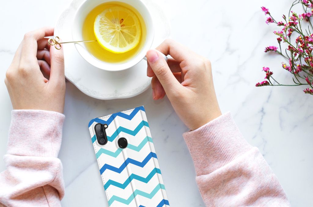 Samsung Galaxy M11 | A11 Hoesje met Magneet Zigzag Blauw