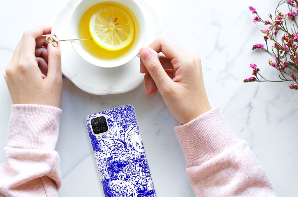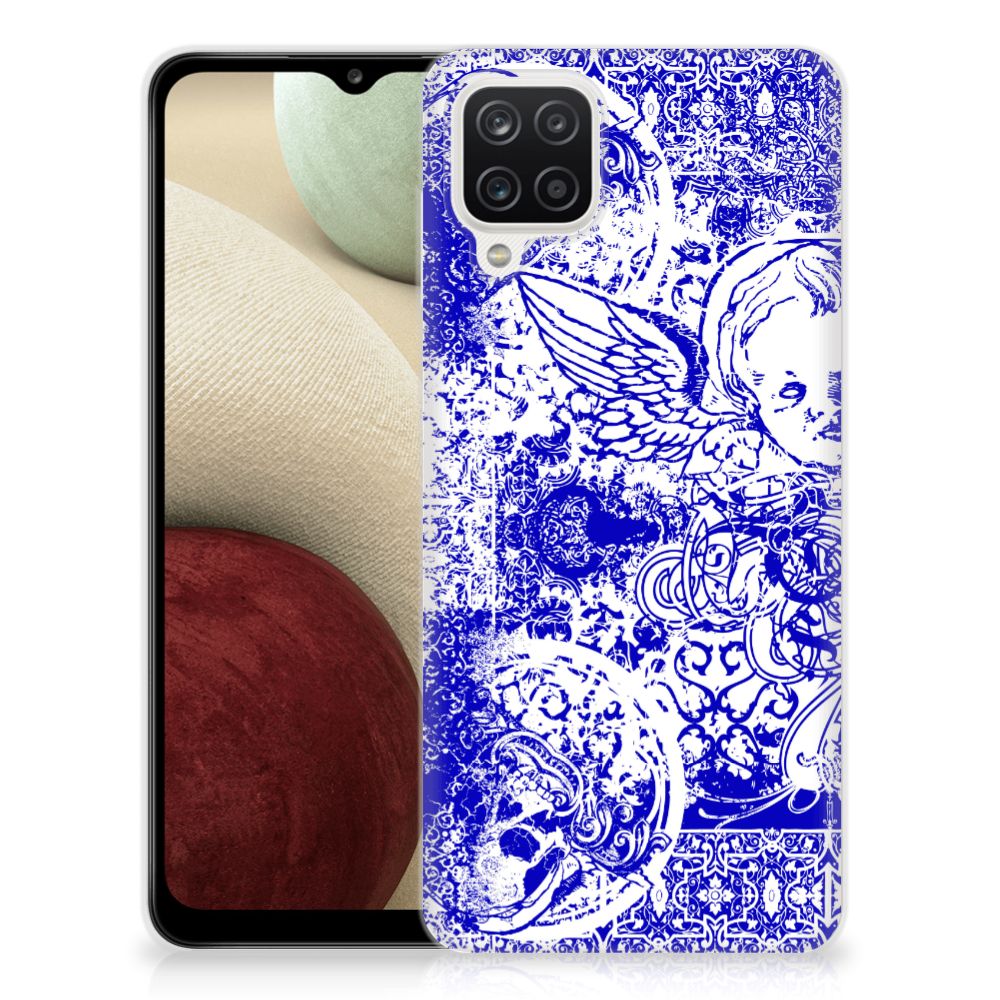 Silicone Back Case Samsung Galaxy A12 Angel Skull Blauw