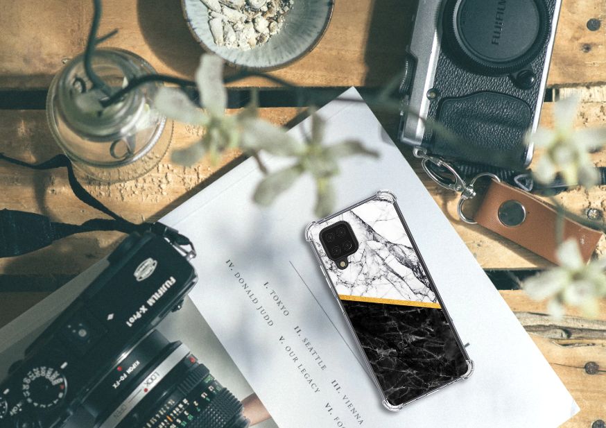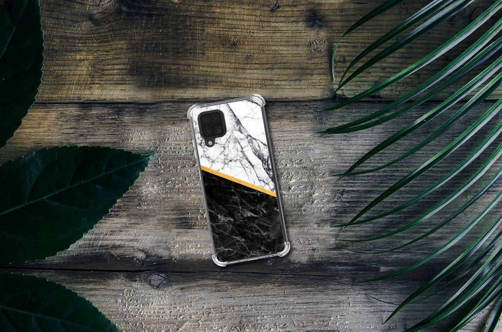 Samsung Galaxy A12 Anti-Shock Hoesje Marmer Wit Zwart - Origineel Cadeau Man