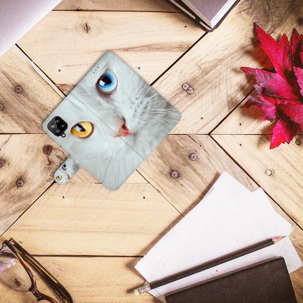 Samsung Galaxy A12 Telefoonhoesje met Pasjes Witte Kat