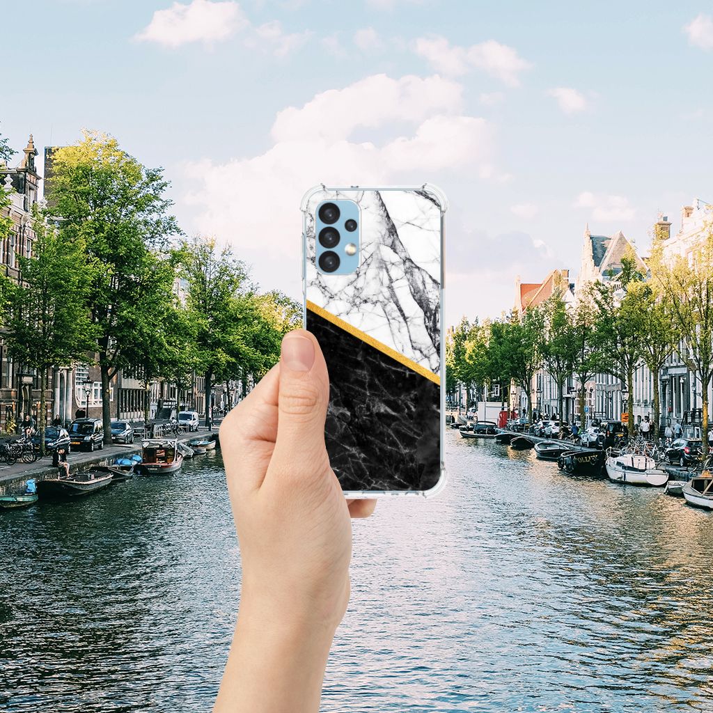 Samsung Galaxy A13 (4G) Anti-Shock Hoesje Marmer Wit Zwart - Origineel Cadeau Man