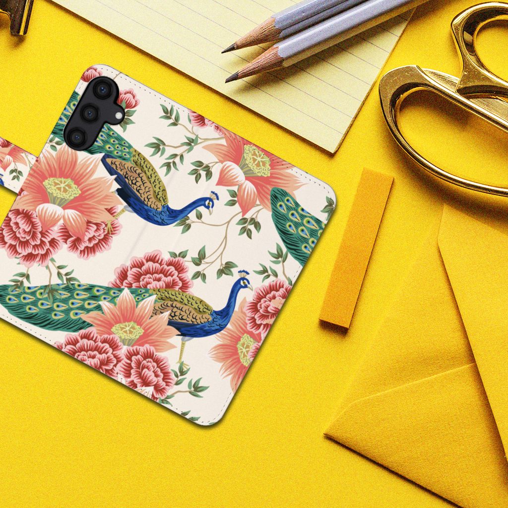 Samsung Galaxy A15 Dierenprint Telefoonhoesje Pauw met Bloemen