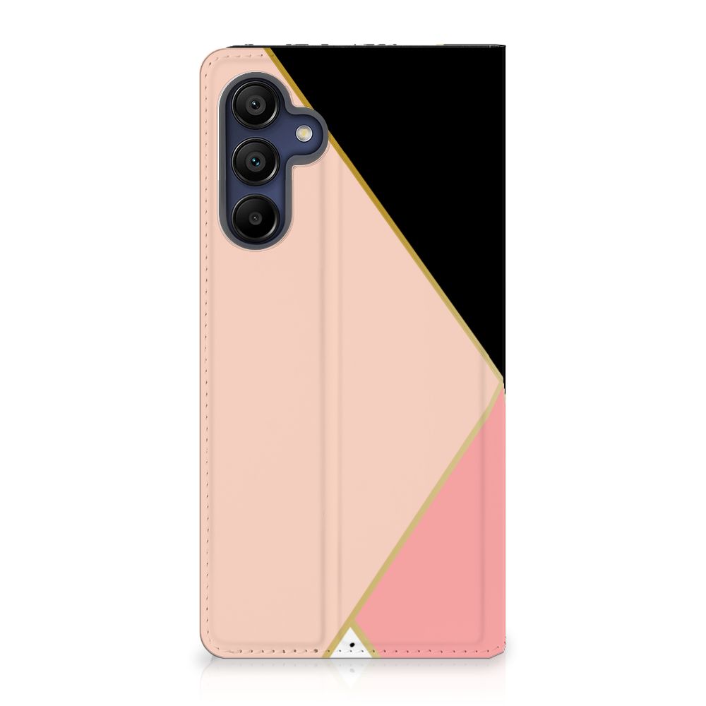 Samsung Galaxy A15 Stand Case Zwart Roze Vormen
