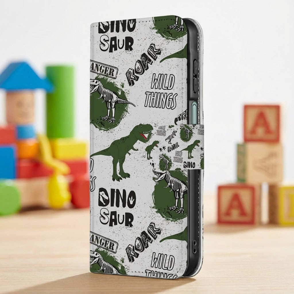 Samsung Galaxy A17 Portemonnee Hoesje Met Pasjes Dino Print PU Leer