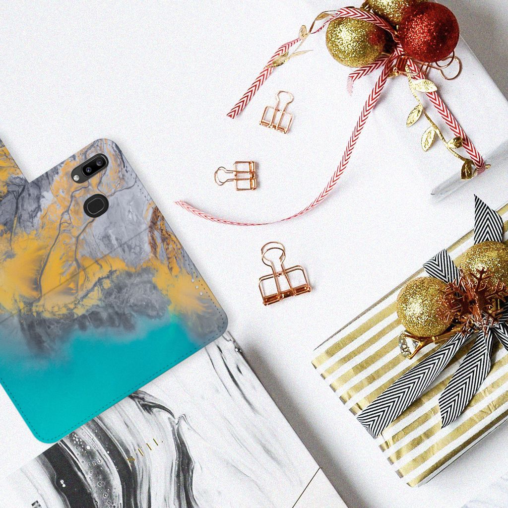 Samsung Galaxy A30 Bookcase Marble Blue Gold