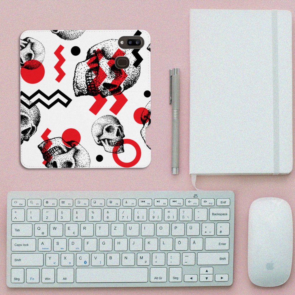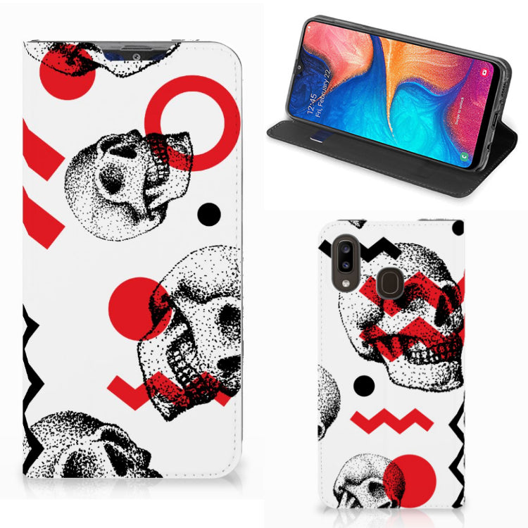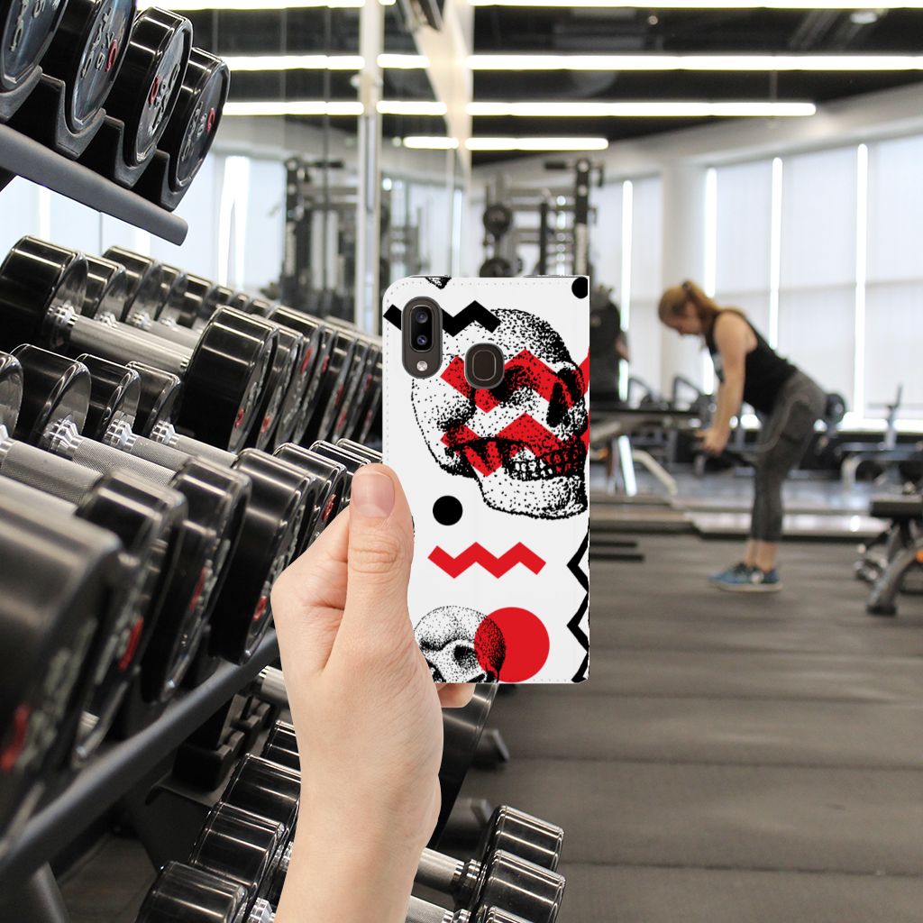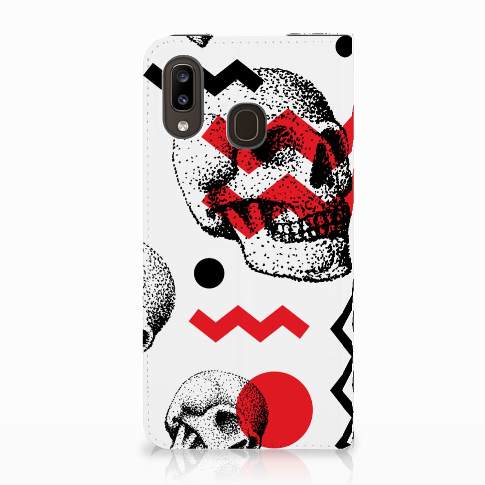 Mobiel BookCase Samsung Galaxy A30 Skull Red