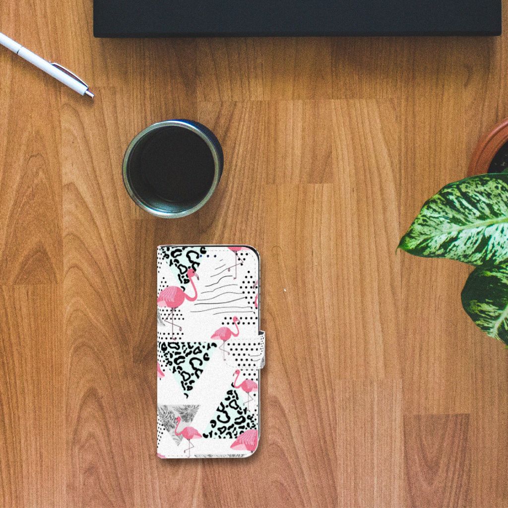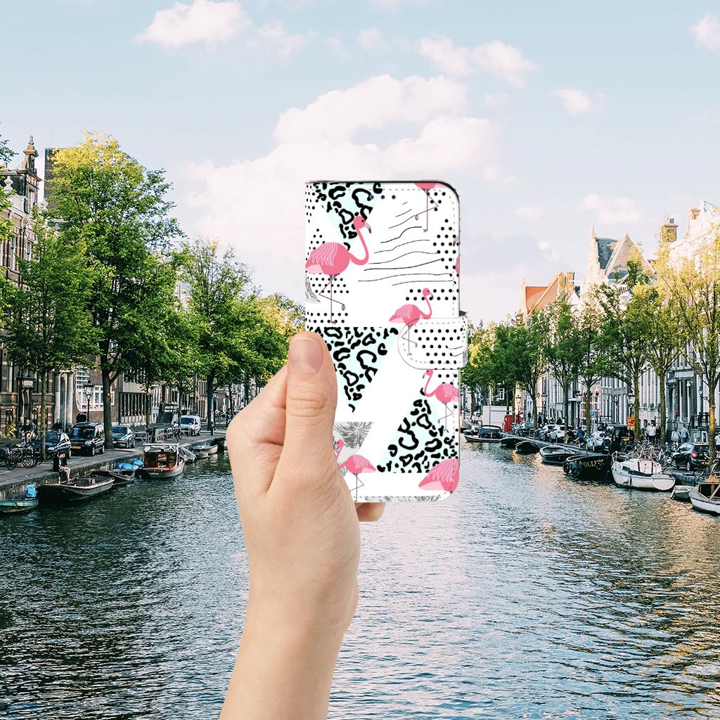 Samsung Galaxy A30 Telefoonhoesje met Pasjes Flamingo Triangle