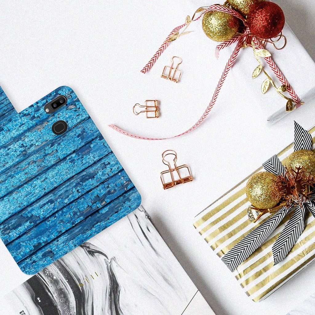 Samsung Galaxy A30 Book Style Case Wood Blue