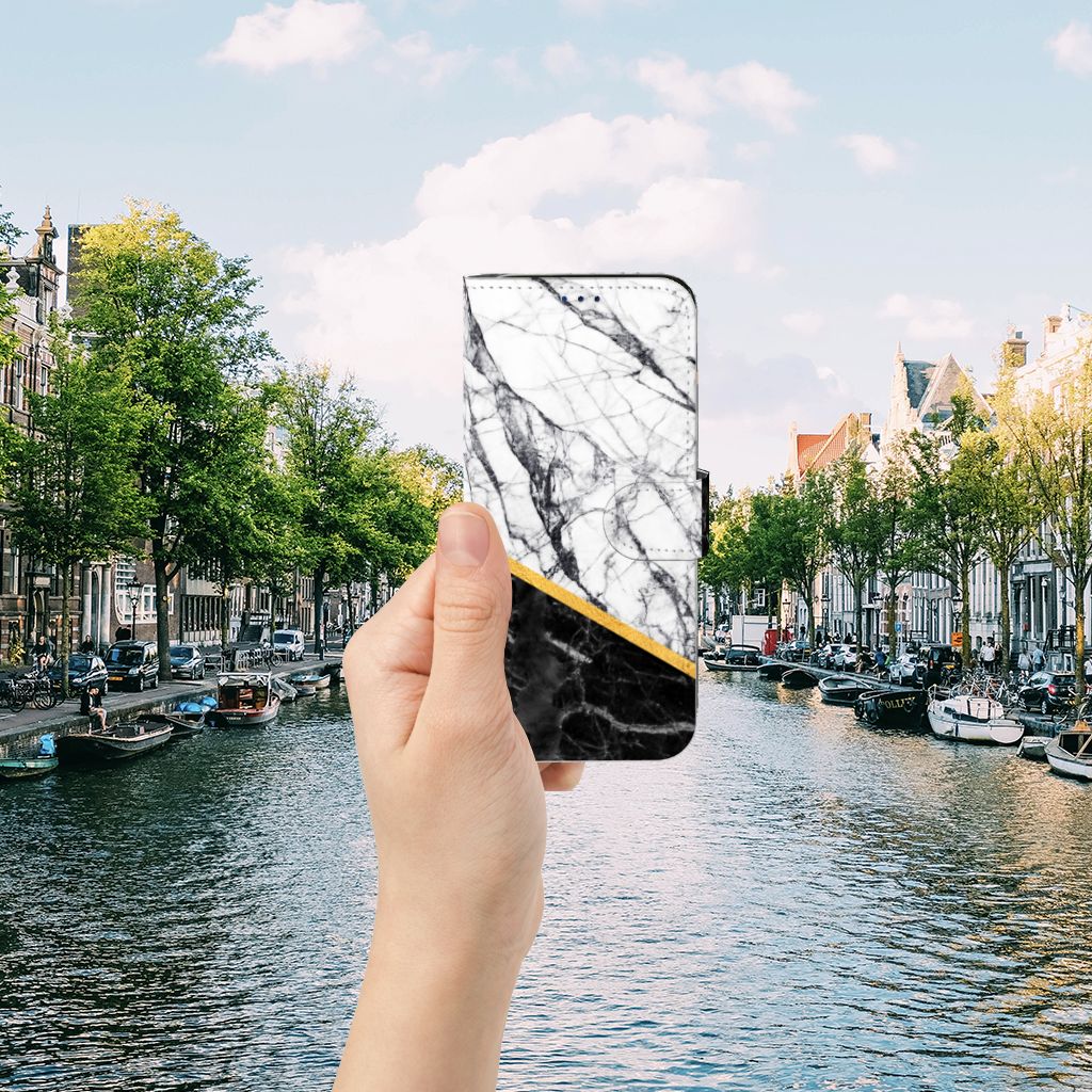 Samsung Galaxy A30 Bookcase Marmer Wit Zwart - Origineel Cadeau Man