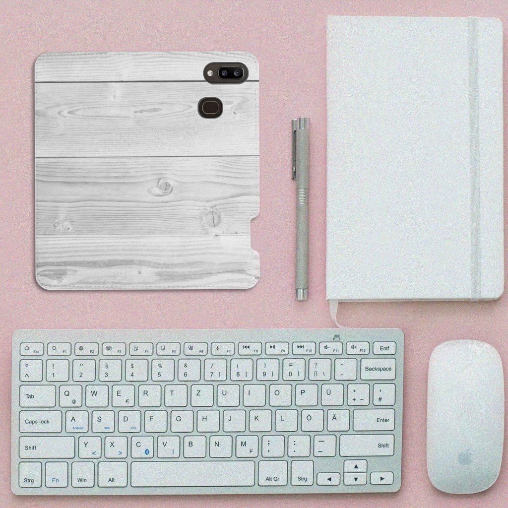 Samsung Galaxy A30 Book Wallet Case White Wood