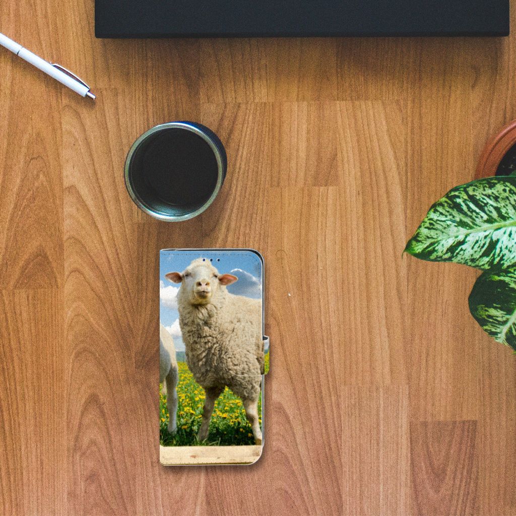 Samsung Galaxy A30 Telefoonhoesje met Pasjes Schaap en Lammetje