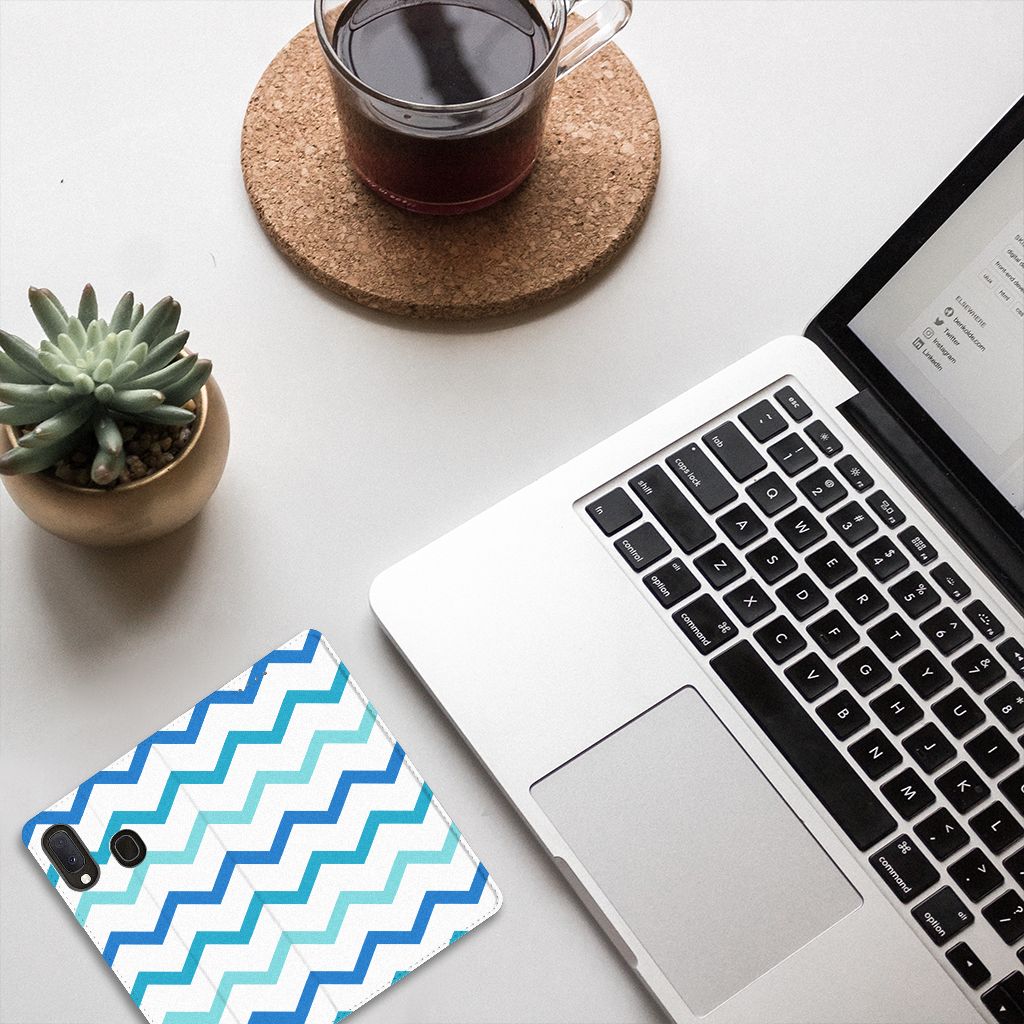 Samsung Galaxy A20e Hoesje met Magneet Zigzag Blauw