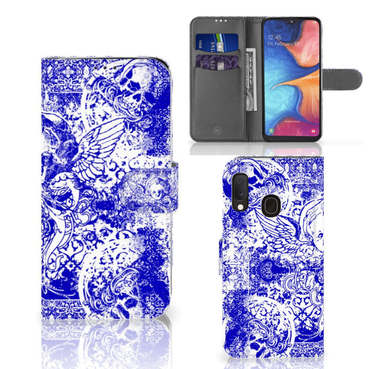 Telefoonhoesje met Naam Samsung Galaxy A20e Angel Skull Blauw