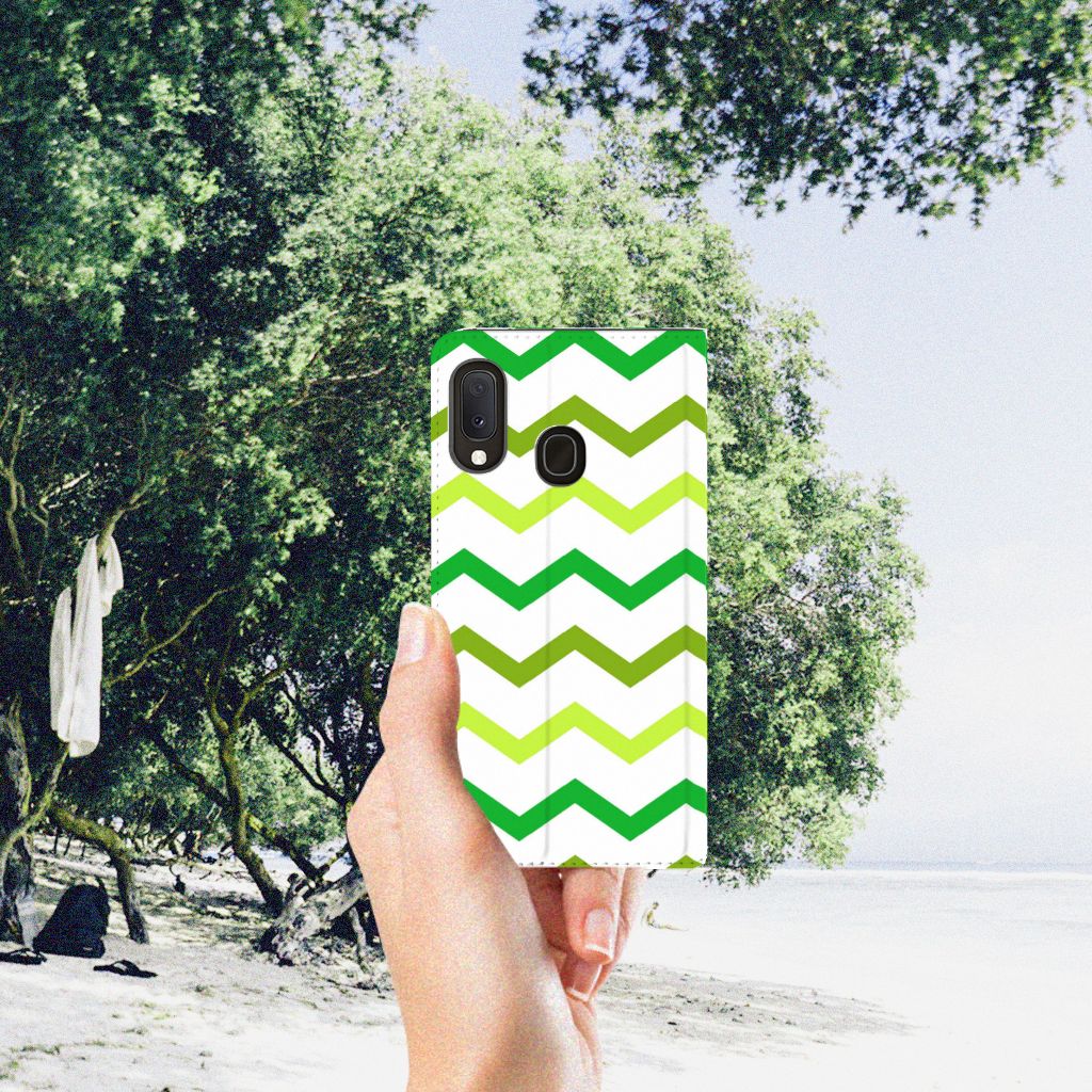 Samsung Galaxy A20e Hoesje met Magneet Zigzag Groen
