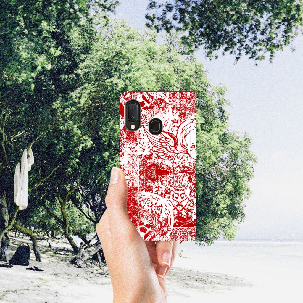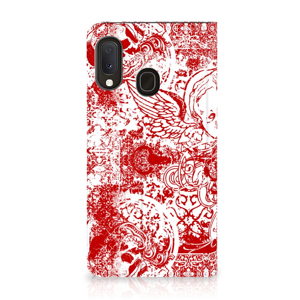 Mobiel BookCase Samsung Galaxy A20e Angel Skull Rood