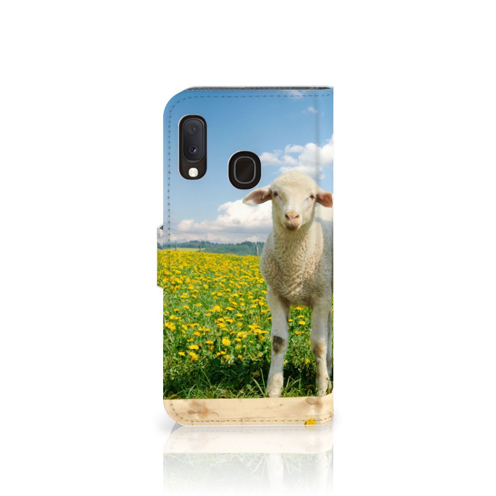 Samsung Galaxy A20e Telefoonhoesje met Pasjes Schaap en Lammetje